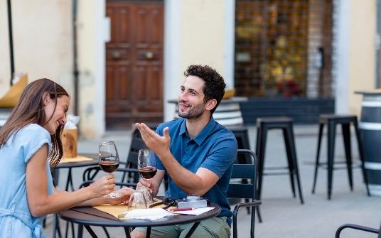 Direct eye contact is expected and held during conversations. Italians are naturally more expressive in their tone of voice, facial expressions, and body language, often motioning with their hands to emphasize their point.